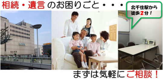 当センターは東京都足立区北千住にて十数年、近隣のみならず様々な地域の皆様のご相続手続きや遺言作成をお手伝いさせていただいております。